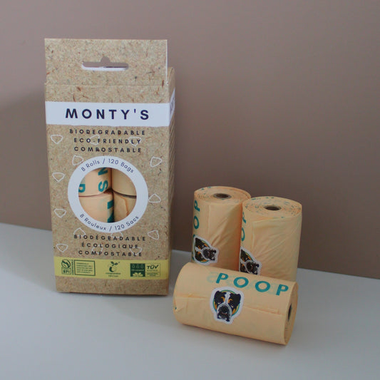 Compostable Cornstarch Poop Bags - 120 Bags (8 Roll Box)