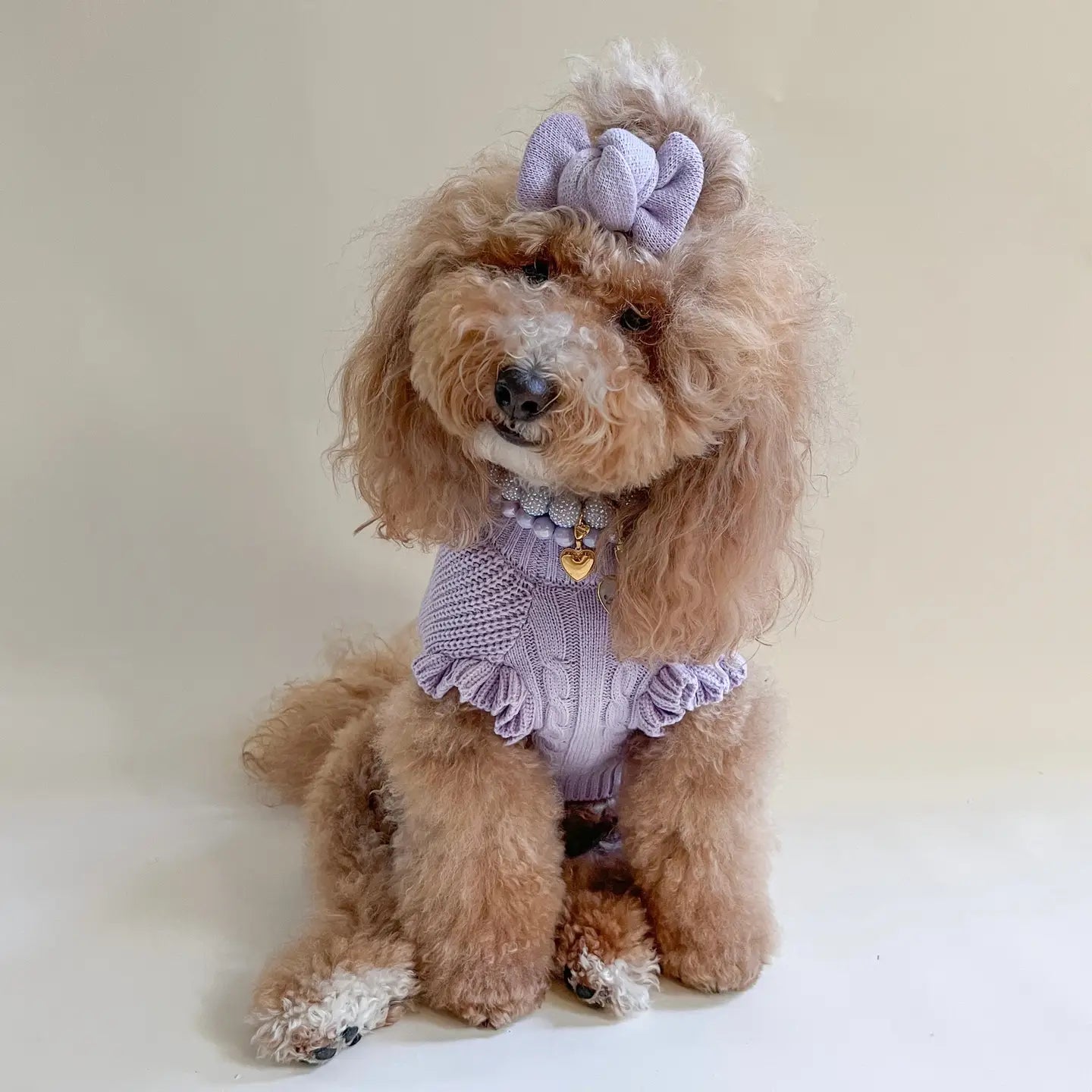 “Lavender lovers, here’s the perfect pairing for you and your pup! 💜 Our Bundle includes; -Lavender Glaze sweater for your pup -Lavender Glaze GG beanie for dog moms Please see directions under images on how to measure your pet’s chest size.